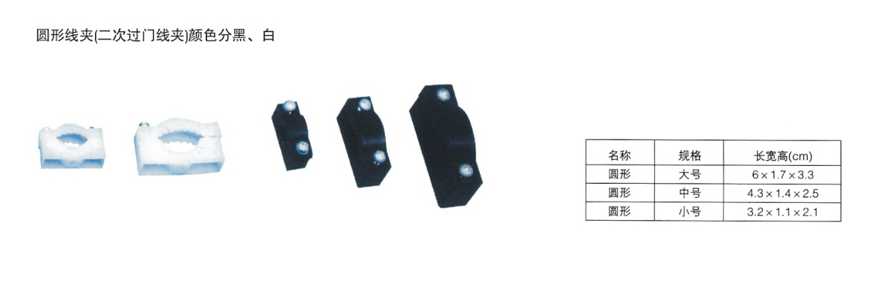 • 产品名称: 圆形线夹(二次过门线夹)颜色分黑、白